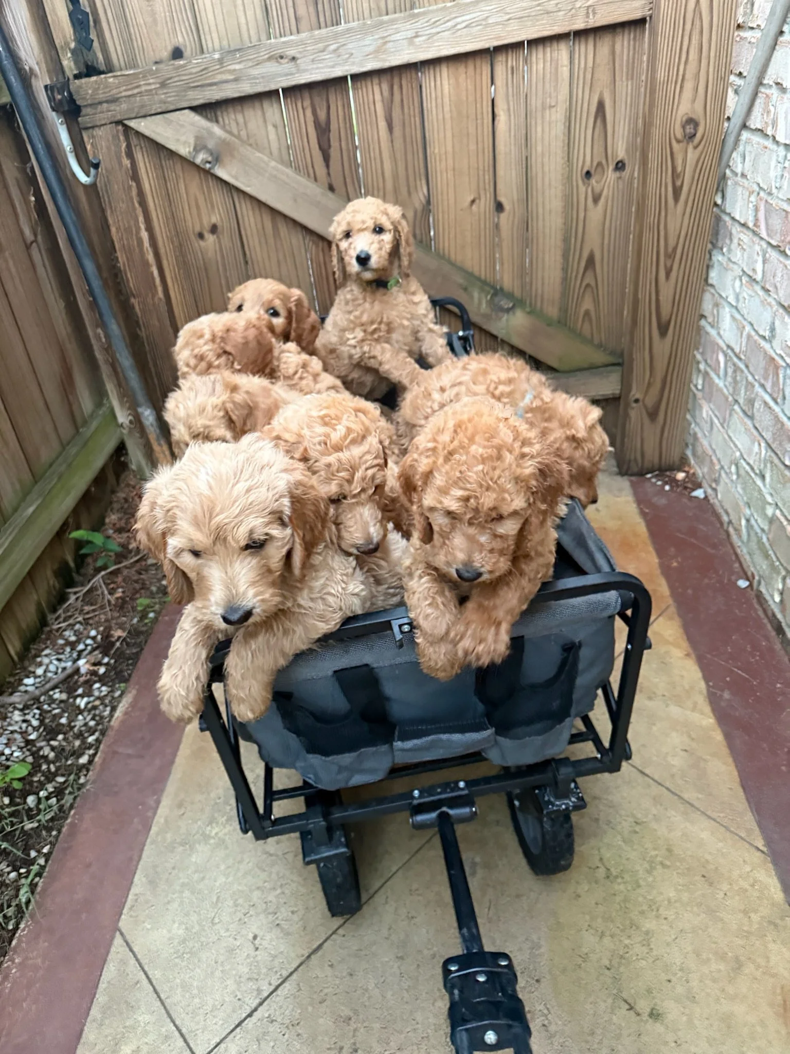 To adopt one of our amazing puppies, there is a short process that we need to go through. To reserve a puppy, you will need to make an initial $500 deposit. You will pay the remainder of the cash when you come to pick up your puppy. With the purchase of a puppy we will send you some information via email with golden doodle care-taking strategies and what you need to do to ensure a cute, happy, and clean golden doodle. You will also receive a complimentary “pup bag'“ with a toy that has their mother and sibling’s scent, a week’s worth of puppy food, their vet records, and puppy pads. You can come pick up your puppy or we can fly it to you if you live further away.